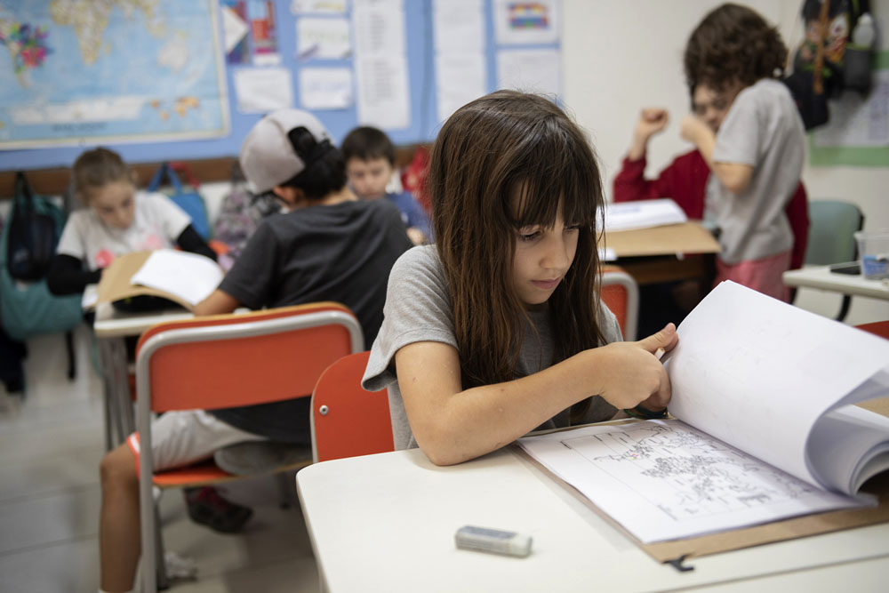 No 1º ano mantemos a mesma rotina do Ensino Infantil como sequência de atividades. A partir do 2º ano, a grade curricular contempla as áreas de Língua Portuguesa, Matemática, História e Geografia, Ciências Naturais, Educação Física e Artes.